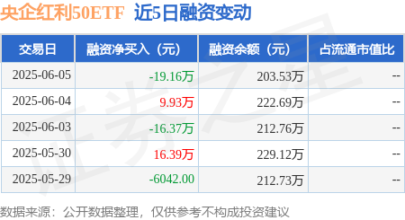 本站消息,6月5日,央企红利50ETF(560700)融资买入14.44万元,融资偿还33.6万元,融资净卖出19.16万元,融资余额203.53万元。